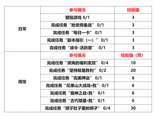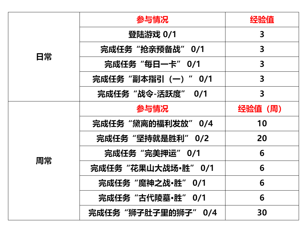 1、战令入口大家可以点击右侧【战令】按钮,弹出战令系统。可以通过完成战令面板上要求的任务获得经验,提升战令等级,获得对应等级的经验! 2、战令使用规则战令开放时间:2025年12月1日更新维护后~1月25日23:59战令开放区服:妙岩宫/玉清宫/五明宫等级介绍:战令最高等级70级,每级升级所需要经验20点,可以通过完成以下任务获得经验 日常-任务每日完成1次,即可获得3经验,同任务当日再次完成不可获得经验(长安广场NPC送礼小猴可以完成日常战令任务“活跃度”) 周常-任务每周完成对应次数,即可获得经验,同任务当周完成不可再次获得经验涉及跨周跨日,需要重新登录客户端,刷新显示哈~ 点击【任务列表】可以查看任务 点击【每日任务/每周任务】 可以查看当前任务完成度 每次升级后,即可获得对应等级的奖励!点击【一键领取】即可获得对应任务的经验! 点击【领取奖励】,即可获得当前还未领取奖励 不会操作的宝宝可以咨询官方客服~如果宝宝们觉得升级太慢,也可以在商城购买道具【冬日战令经验书(绑)】,使用后可以升级经验20 点(提升1级!!) 3、战令奖励一览战令的奖励可见下图,还可以购买128元升级战令额外获得VIP奖励!解锁本期战令将获得唯一坐骑奖励【布偶猫】!您将会获得一只超级可爱的猫猫坐骑!(详情图见下)购买链接:点击进入说明:购买后获得CDK,兑换后可以获得道具【冬日战令VIP解锁(绑)*1】,解锁之后即可获得VIP等级奖励!(普通等级与VIP等级奖励均可获得!)注意:每个游戏账号在对应的区服仅可购买1次!可千万不要激活错误角色了哦!注意:战令开放期间,如有未完成任务及未领取奖励,奖励内容无法补发。奖励领取无法延期!【冬日战令经验书】将于战令结束后下架 布偶猫: 【战令兑换券(绑)】可在长安广场NPC“送礼小猴”处兑换: |