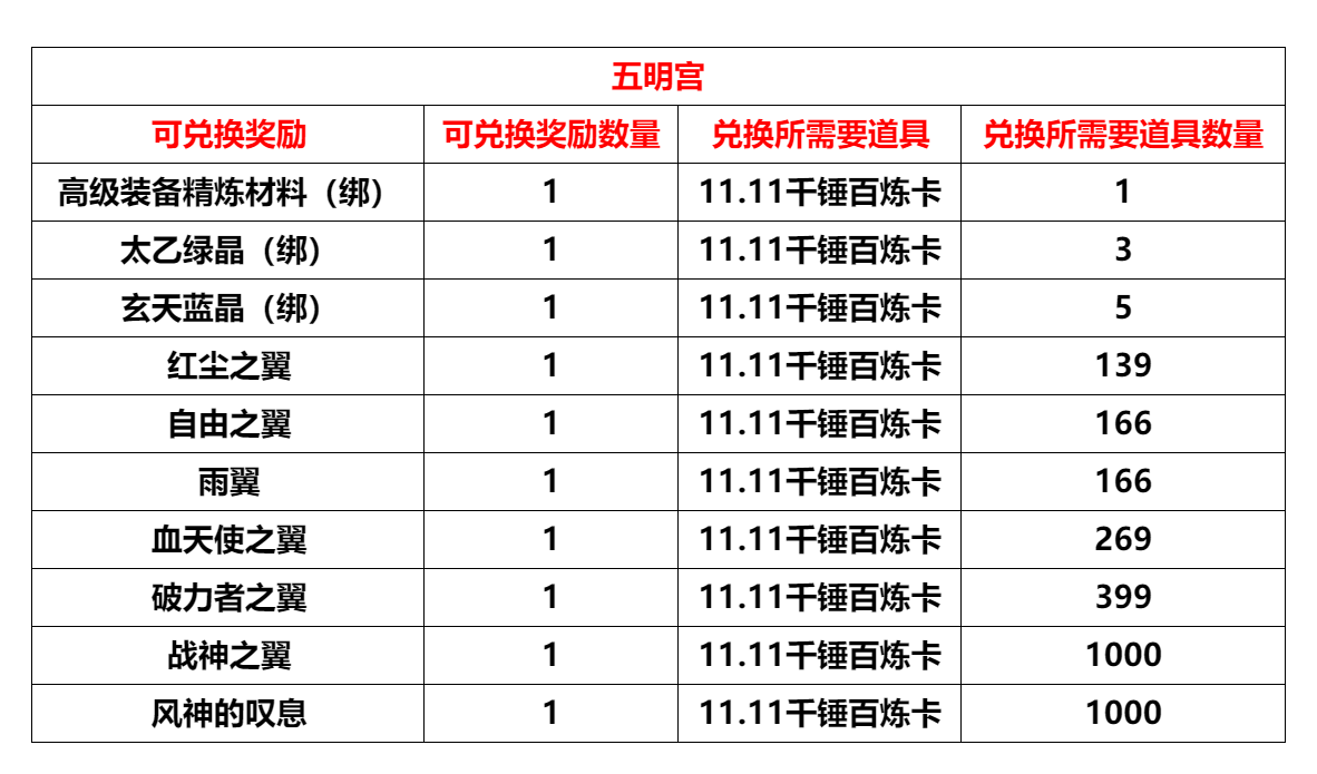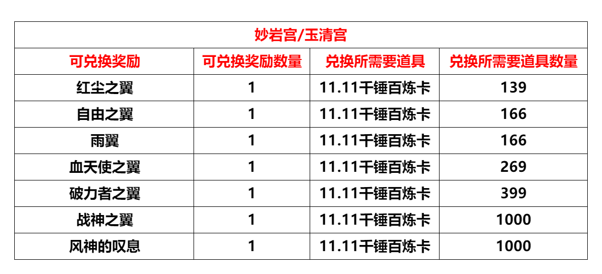 “妙岩宫”、"玉清宫"、“五明宫”,将于2025年12月29日10:00进行例行维护更新,预计更新维护时间4小时,请各位玩家互相转告提前下线。感谢大家对我们工作的支持! 感谢大家一路的相伴!鸡公煲鸡公煲温暖我的胃~这个圣诞刚结束元旦就到来~虽然25年已入尾声,但浇不灭运营们对游戏建设的热情!关于本次储值活动与更新内容,我们:? 小伙伴们的意见这边已经收到啦!本次储值,商城,运营活动均已精准投放大家反馈的需求物资! ? 元旦特别活动:商城保底活动、储值活动礼袋数量UP、消费活动开启!? 为各位天命人在游戏内更好的pvp体验,1月即将针对所有pvp相关活动进行更新调整!也感谢近期各位小伙伴每次向官方客服反馈的宝贵建议,让我们对游戏可以不断的优化游戏体验!在这里我们也预告一下,1月12日更新后“PVP相关运营活动”进行的调整内容包含的相关活动有:1、世界BOSS天王活动2、势力战-神龙凤凰,北俱芦洲城主活动3、郡城争夺战4、天龙上仙与喵星大魔王5、疯狂小象、声望兔、BOSS入侵活动调整方向:1、减负2、产出优化与资源整合3、PVP运营活动玩法的持续新增与部分活动的关闭4、战场武魂的后续开放预告希望可以通过调整,提升大世界活动参与的活跃,为PVP玩家提供新的激情! 【内容调整】 妙岩宫/玉清宫/五明宫: 1. 摄像机视距范围调整,增加玩家视野可视距离 2.?征伐相关任务优化,打怪相关任务材料掉落概率提升 玉清宫/五明宫: 1. 【战场礼包(绑)】内容调整:开启后有概率获得【卡片收集册(绑)、赤羽丹(微量)(绑)、一阶炎阳火(绑)、普通仙令(绑)、精品仙令(绑)】2. 【普通将令礼包(绑)】内容调整:开启后有概率获得【普通将令(绑)、一阶炎阳火(绑)、赤羽丹(微量)(绑)、一阶玄阴水(绑)】3. 【精品将令礼包(绑)】内容调整:开启后有概率获得【精品将令(绑)、一阶炎阳火(绑)、赤羽丹(微量)(绑)、元神珠(50)(绑)】 五明宫: 任务:蓝色斗鱼【周常】即将于1月5日更新维护后关闭,请及时完成 储值礼包【成长助力礼盒】、【升级有礼VIP礼盒】将于12月31日13:59下架,相对奖励页面也将下架! 1.?【象牙宝箱(绑)】内容调整:有几率随机获得以下道具之一,不周碎片(戒指)*1、不周碎片(项链)*1、不周碎片(装饰)*1、不周碎片(香囊)*1、彩虹石碎片*1、钻石*1、仙灵珠10000(绑)*5、装备精炼材料(绑)*4、二十四节气令牌(绑)*1、节气羽翼兑换卡(绑)*1、欧冶子残篇(绑)*2 概率:消耗品?87.00% 、珍贵道具 13.00% 珍贵道具:不周碎片(戒指)*1、不周碎片(项链)*1、不周碎片(装饰)*1、不周碎片(香囊)*1、彩虹石碎片*1、钻石*1 【商城相关】 妙岩宫/玉清宫/五明宫(元旦特别福利活动): 开启【喜迎元旦】的数量达到100个,可获得:三阶炎阳火(绑)*20 开启【喜迎元旦】的数量达到6000个,可获得:四等稀有宝石兑换券(绑)*1开启【喜迎元旦】的数量达到12000个,可获得:【钢铁之翼*1、烈焰之翼*1、四等稀有宝石兑换券(绑)*2】三选一(会员中心提交问题申报确认选择)活动奖励将于将于1月12日维护后进行统计活动奖励将于活动结束后5个工作日发放活动奖励仅计算单一游戏账号开启礼盒的最大数量,无法多个游戏账号综合统计活动奖励无法叠加获得,奖励仅可获得一次 ?长安广场NPC“玄衣大祭司”开放兑换:(仅限本次活动周期内限时开放) 【四等稀有宝石兑换券(绑)*2】可兑换【四等陨星珠(绑)*1】 【四等稀有宝石兑换券(绑)*2】可兑换【四等落云珠(绑)*1】 元旦限时折扣: 妙岩宫/玉清宫/五明宫: 幻幽草(金)??售价:7650元宝(原价:9000元宝)初级镶嵌符???售价:170元宝(原价:200元宝)中级镶嵌符???售价:425元宝(原价:500元宝)初级拆卸符???售价:425元宝(原价:500元宝)中级拆卸符???售价:1350元宝(原价:1500元宝) 妙岩宫: 永恒仙金????售价:15000元宝(原价:16000元宝)仙级金锥????售价:1020元宝(原价:1200元宝)仙级刻刀????售价:1020元宝(原价:1200元宝) 玉清宫: 上古玉锥????售价:800元宝(原价:1000元宝)上古刻刀????售价:800元宝(原价:1000元宝) 五明宫:精金玉锥????售价:640元宝(原价:800元宝)凤啄刻刀????售价:640元宝(原价:800元宝) 商城上架: 妙岩宫: 喜迎元旦礼盒???????售价:299元宝喜迎元旦礼盒:有几率随机获得以下道具之一,二阶炎阳火*4、一等升灵法石*1、赤羽丹(强效)*1、普通舍利兑换丹*1、回复药水*2、11.11千锤百炼卡*1、一等真辟尘珠*1、一等真摩尼珠*1、一等真翠榴石*1、一等真碧玺石*1、一等真陨星珠*1、一等真落云珠*1、一等真佛光珠*1、一等真白鹭珠*1、二等真落云珠*1、二等真陨星珠*1、仙级金丹*1、无骨舍利碎片(金)*1、乌金丹*1、四等宝石原石(绑)*1、坐骑兑换券(极品)*1、高级防具符语兑换劵*1、口不能言(绑)*1、高级肉盾*1、钢铁之翼*1、烈焰之翼*1、暴龙*1、四等真宝石原石*1、四等稀有宝石兑换券(绑)*1 概率: 消耗品 89.67%宝石类 7.60%强化类 13.07%珍贵道具 2.73% 珍贵道具:无骨舍利碎片(金)*1、乌金丹*1、四等宝石原石(绑)*1、坐骑兑换券(极品)*1、高级防具符语兑换劵*1、口不能言(绑)*1、高级肉盾*1、钢铁之翼*1、烈焰之翼*1、暴龙*1、四等真宝石原石*1、四等稀有宝石兑换券(绑)*1 ※开启福袋获得以上道具均会触发世界喊话 玉清宫: 喜迎元旦礼盒???????售价:299元宝 喜迎元旦礼盒:有几率随机获得以下道具之一,二阶炎阳火*4、赤羽丹(强效)*1、超级金柳露*1、宠物附身符*1、天罡宝玉*1、11.11千锤百炼卡*1、回复药水*2、一