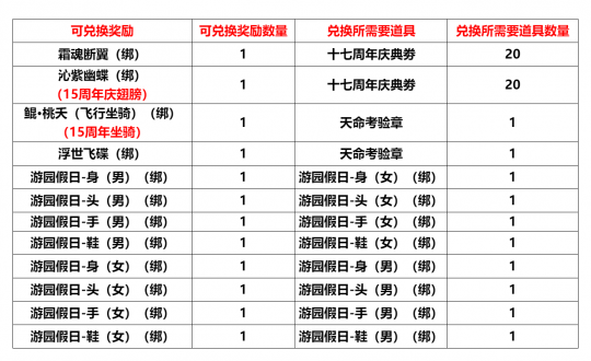活动一、元宵还是汤圆?这是一个问题活动时间:2026年3月2日-2026年3月9日维护前限制等级:40级活动NPC:团团圆圆(长安广场:2521,870) 活动内容:在福利妹出接取相关任务后,前往风语花妖【-214,3994】幻兔【-414,3965】获得酒酿,豆沙后,前往元宵厨台【长安广场:2505,858】制作豆沙汤圆和酒酿元宵。制作豆沙汤圆和酒酿元宵时有几率获得“黏糊糊”。(未接取相关任务将无法获得任务道具) 活动奖励:二阶炎阳火(绑)*1、刺史令(绑)*5、二十四节气令牌(绑)*1黏糊糊(绑):食用后体质增加10点,持续30分钟 活动二、团团圆圆过元宵活动时间:2026年3月2日-2026年3月9日维护前 (一线)限制等级:70级活动NPC:团团圆圆(长安广场:2521,870)活动内容:击败三只“圆圆的元宵”【长安广场 (2422,838)、(2422,628)、(2539,625)、(2628,625)、(2630,834)、朱紫国境 (-4987,2946)、(-4964,2833)、(-5019,3116)、(-4961,3230)、(-4862,3088)、长安国境(2214,1149)、(2129,966)、(2058,721)、(2004,612)、(1883,534)、蘑菇林(1709,918)、(1633,1031)、(1562,1193)、(1430,1240)、(1468,1118)】,完成之后向团团圆圆(长安广场:2521,870)提交活动奖励:高级装备精炼材料(绑)*1、节气令牌礼包(绑)*1注:击败“圆圆的元宵”有几率掉落“萌团子的碎片(不绑定)”,收集150个即可在“团团圆圆(长安广场:2521,870)”处兑换“萌团子的元神符(绑)”注:此活动将不定期开放 萌团子的元神符:变身效果:移动速度+2,物理防御+50,法术防御+50,养成属性:7级,体质+20 活动三、周年盛典·欢庆宝箱活动时间:2026年3月2日至2026年3月23日,每天19:00-21:00活动线路:1线活动内容:每天19:00将会在长安广场撒下大量“欢庆宝箱”,打开后可获得诸多神奇的道具!欢庆宝箱:开启后有概率获得十七周年庆典卷(可交易)、跳跳糖(绑) 活动四、周年盛典·捣蛋妖马活动时间:2026年3月2日至2026年3月23日,每天19:00-21:00活动线路:1线活动内容:每天19:00在车迟国(-5341,5100)附近会出现大量“捣蛋妖马”,击杀后可获得它身上携带的诸多道具!捣蛋妖马:击败后可获得十七周年庆典卷(可交易) 活动五、周年盛典·天命的考验活动时间:2026年3月2日至2026年3月23日,每周周五,周六,周日22:00-23:59活动线路:1线活动内容:每周五六日22:00在魔门废墟(-1930,2962)出现“天命的考验”,击杀后可获得它身上携带的诸多道具!天命的考验:击败后有概率获得游园假日-身(男)(绑)、游园假日-身(女)(绑)、游园假日-头(男)(绑)、游园假日-头(女)(绑)、游园假日-手(男)(绑)、游园假日-手(女)(绑)、游园假日-鞋(男)(绑)、游园假日-鞋(女)(绑)、恶魔导师-身(男)(绑)、恶魔导师-手(男)(绑)、恶魔导师-头(男)(绑)、恶魔导师-鞋(男)(绑)、天命考验章(可交易) 十七周年庆大使(长安广场:2528,780)可兑换: |